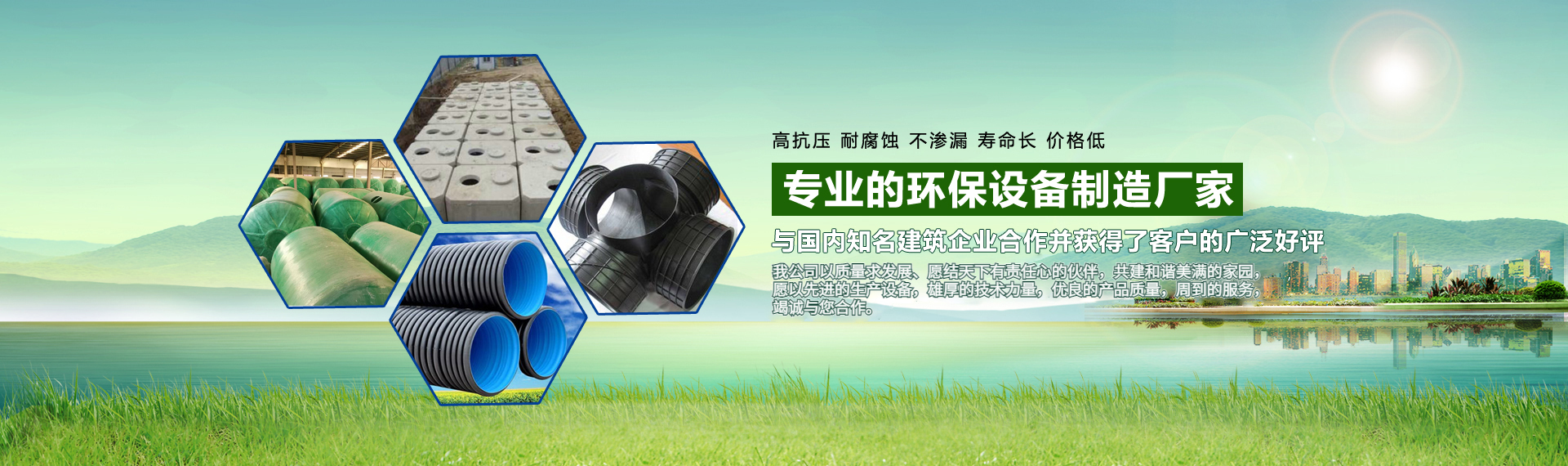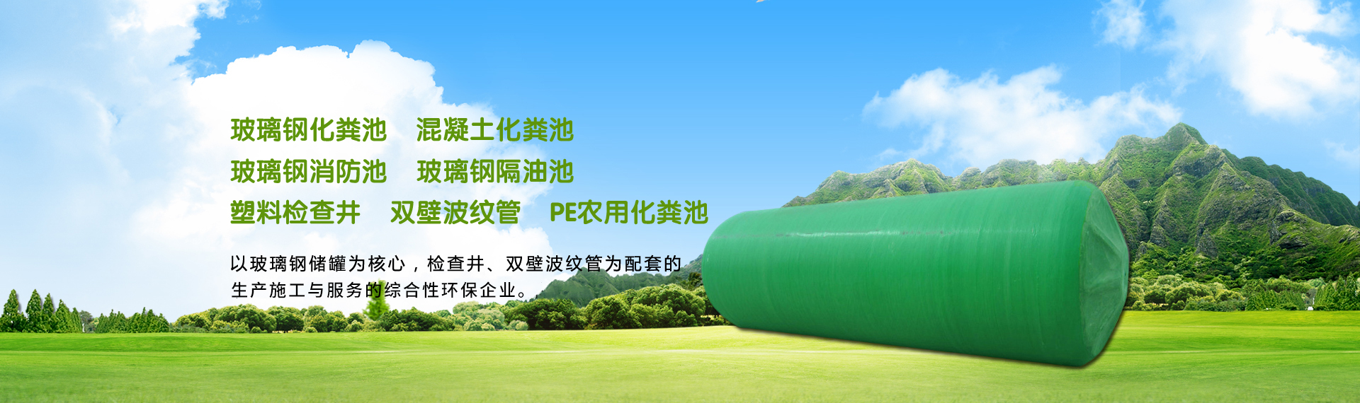 公司是以地埋式機械纏繞玻璃鋼化糞池、隔油池、消防水池、蓄水池等工程業務為核心,以塑料檢查井、雙壁波紋管、PVC/PPR供排水管材等配套及設計生產與服務的綜合性環保企業。